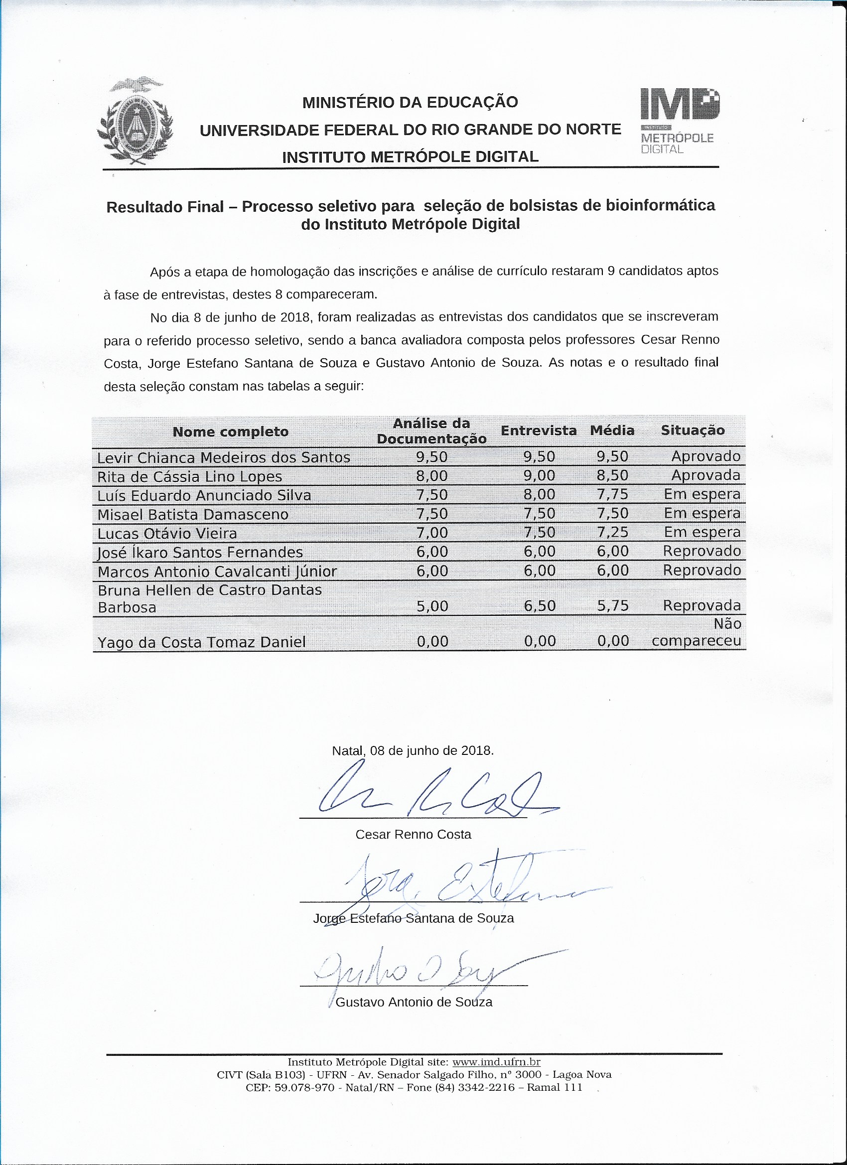 IMD/ UFRN - Seleção de Bolsista Bioinformática - IMD